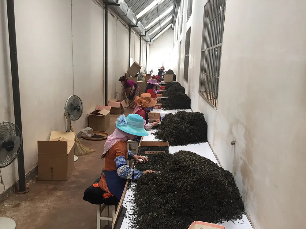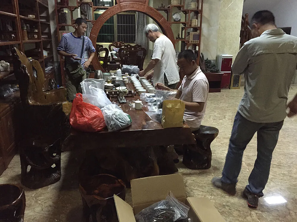 到了勐海我们就开始投入工作,来之前我们就已经做了很多工作,了解到不少的勐海有古六山茶的料头信息,第一天我们大约就看了几十个茶样,我们察颜观色初选觉得可以带回来20来个茶样,计划晚上开汤。