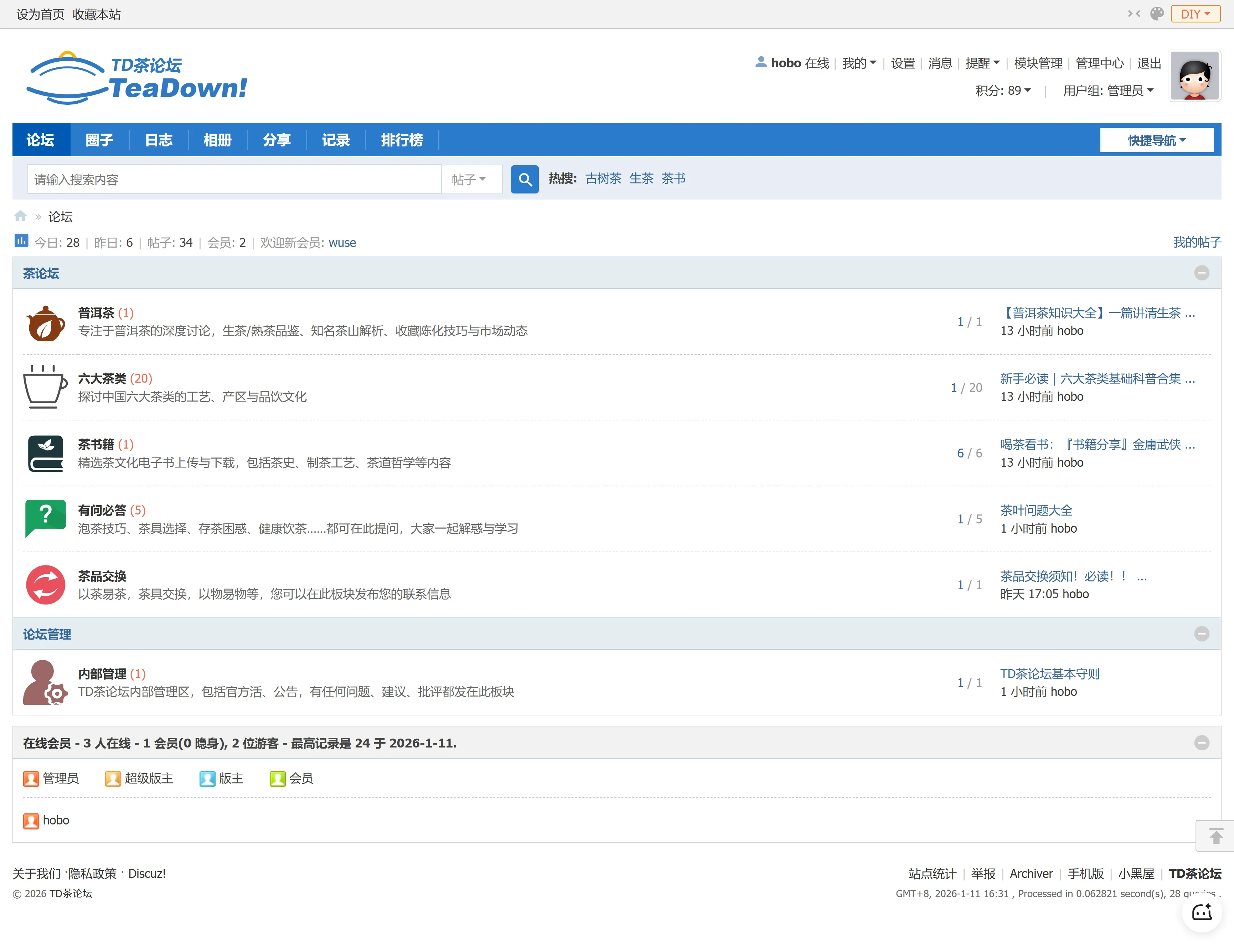 最近用Discuz做了一个茶论坛,teadown.com,欢迎交流!