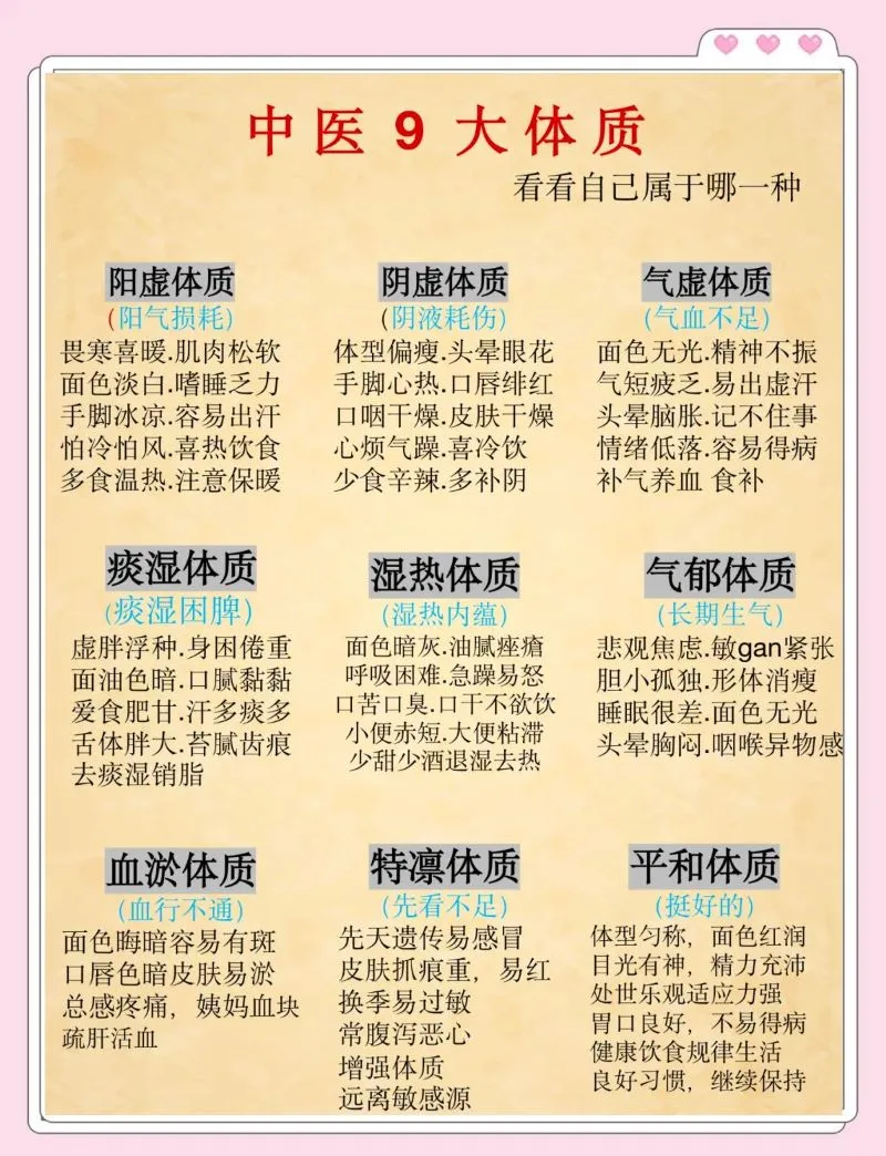 无论何时,养生都是一件重要的事情。了解自己的体质,才能更好地调理身体。下面,我们来聊聊中医的九大体质,以及如何根据自己的体质进行养生。